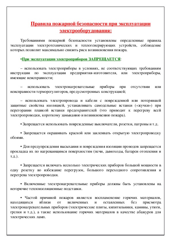 Правила пожарной безопасности при эксплуатации электрооборудования (DOCX/JPG)